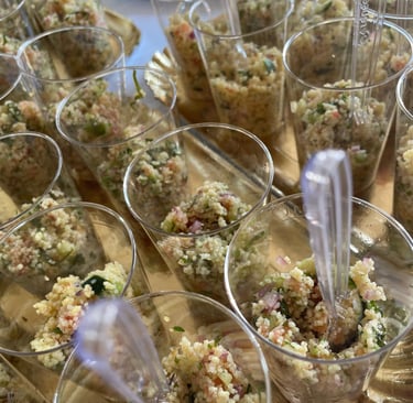 - taboulé marocain, semoule moyenne, tomates, concombre, poivrons, citrons et menthe